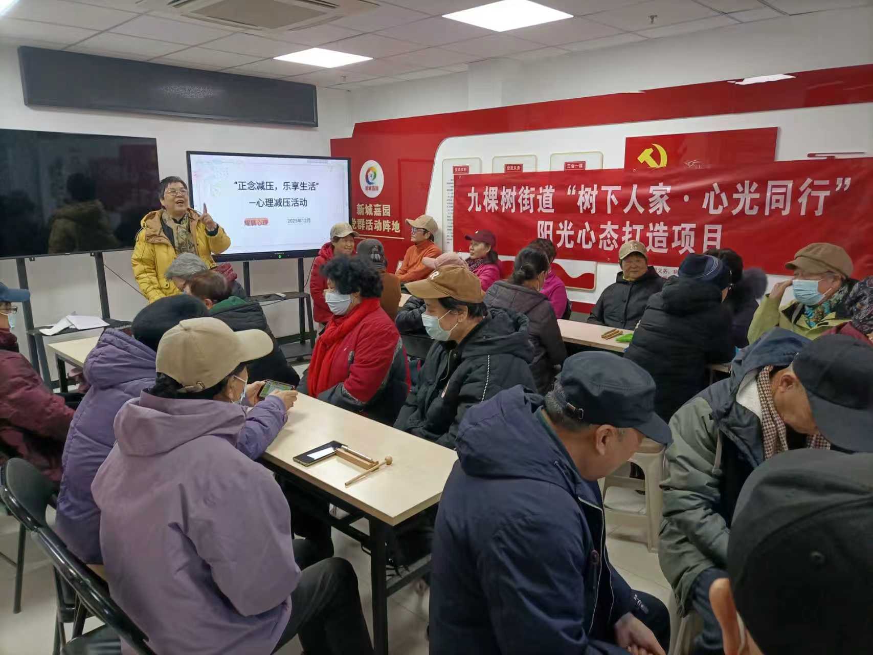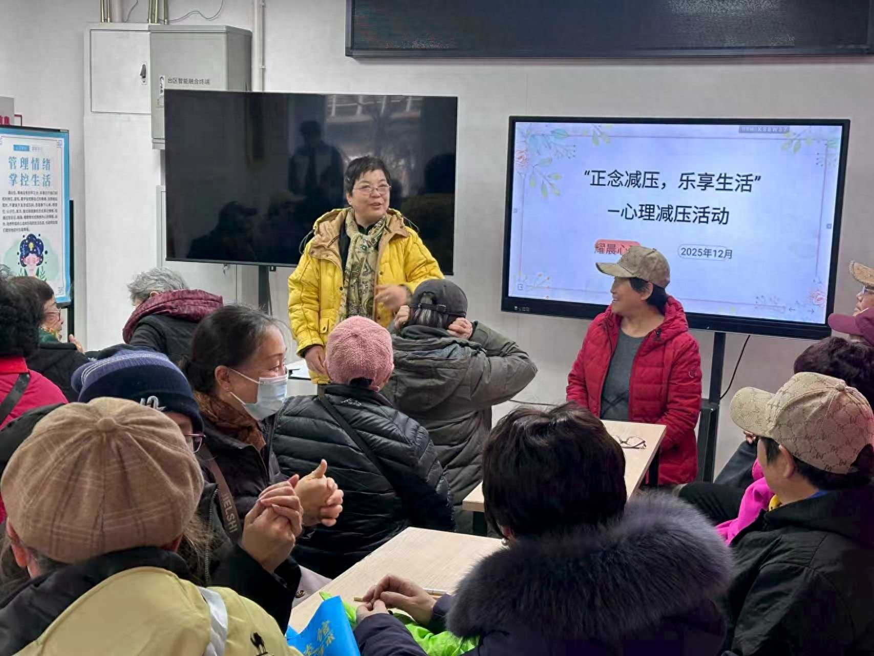 (记者 常魁星 通讯员 王小莲)2025年12月29日,北京市通州区新城家园社区活动室内座无虚席,社区居民早早到场等候,大家表示,日常工作生活压力较大,十分期待通过专业指导学习减压方法,舒缓身心疲惫。因此,一场以 “正念减压,乐享生活” 为主题的心理减压活动在此温馨开启。