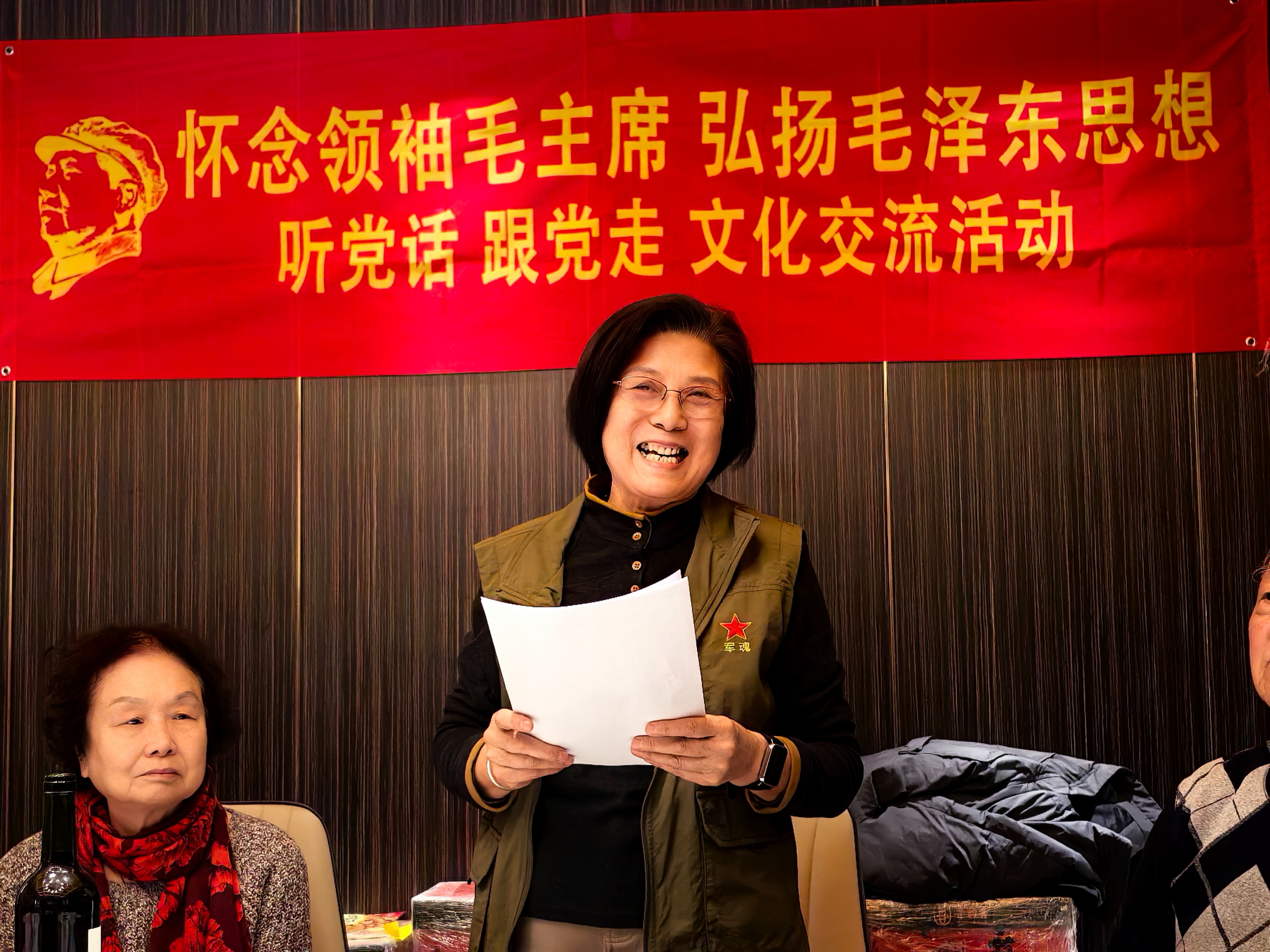 她说,感谢毛主席的警卫员尹月林、夫人李俊卿、文登驻京商会孙海君秘书长对此次交流会的支持帮助!也感谢大家一年来不离不弃的支持和鼓励!在新年来临之际,祝愿大家身体健康、笑口常开、阖家幸福!让我们携手并肩,砥砺前行,以饱满热忱迎接崭新的一年!