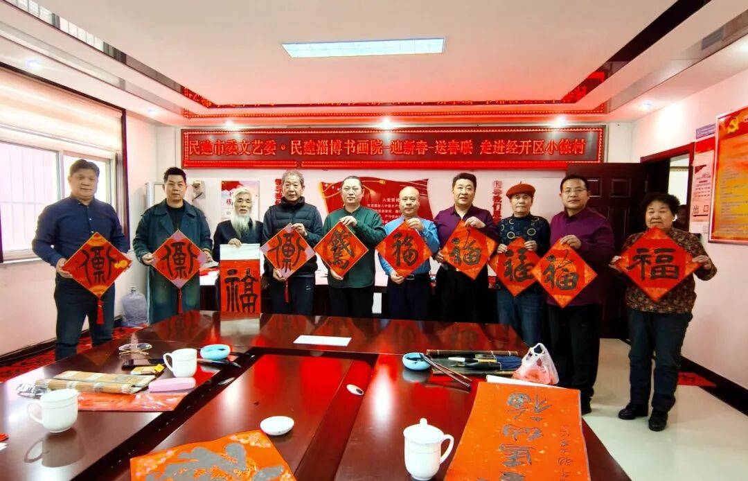 2月10日,民建淄博市委会文化艺术委员会、民建淄博书画院和民建张店区委会的书画家们,应邀走进经开区傅家镇小徐村,开展“翰墨迎新春,马年送万福”系列活动。民建淄博市委会文化艺术委员会主任、民建张店区委会副主委姜长胜,民建市委会文化艺术委员会副主任、民建张店区委会副主委左向东,文化艺术委员会副主任田淑国、冯尚杰,经开区傅家镇相关负责同志出席活动。