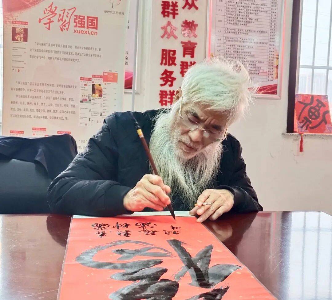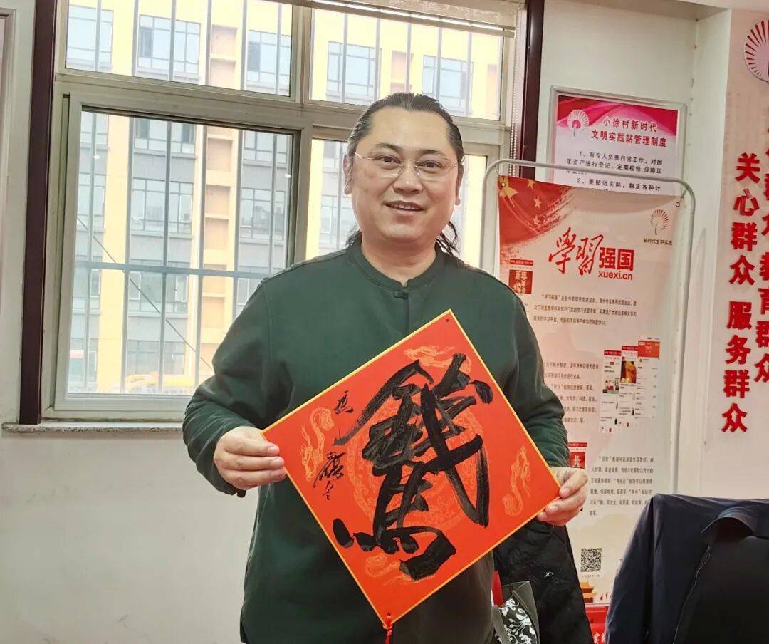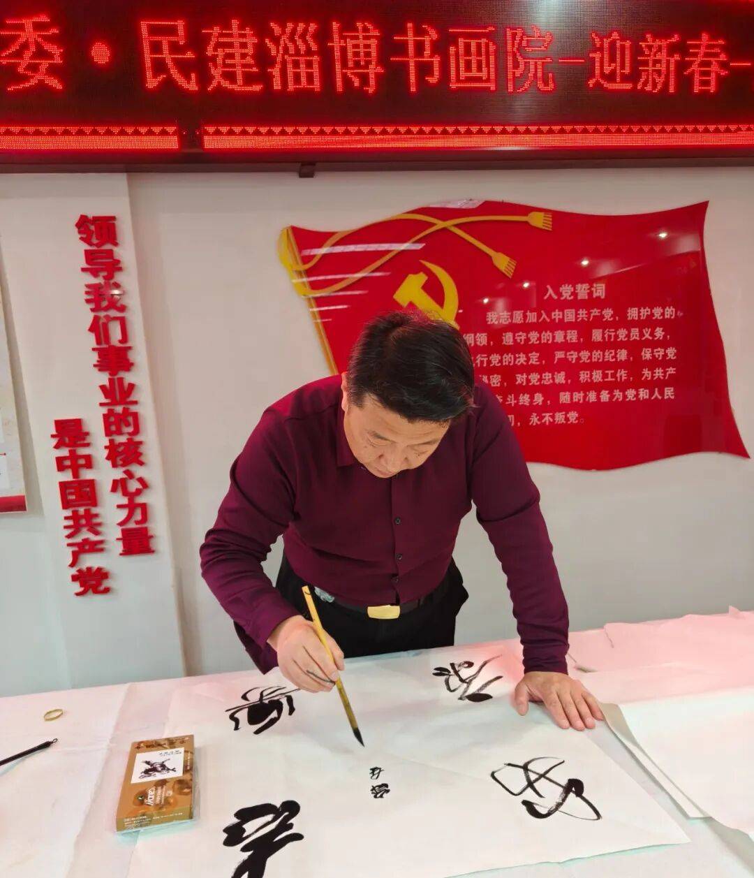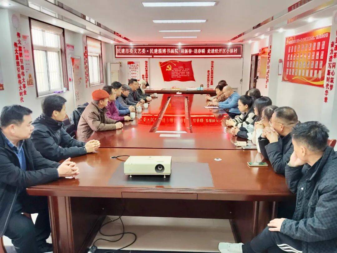 姜长胜介绍了近年来民建市委会文化惠民,助力乡村振兴活动成果。书画创作活动现场气氛热烈、墨香四溢,书画家们挥毫拨墨,将美好祝愿化作一副副寓意吉祥的春联和一张张气韵生动的“福”字,传递到村民手中。
