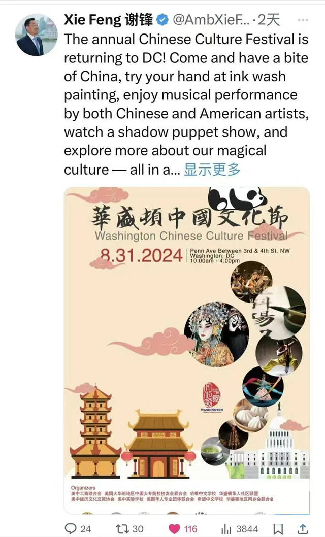 这是一场跨越时空的文化盛宴,承载着千年华夏的厚重底蕴。从笔墨丹青的写意风雅,到丝竹管弦的婉转悠扬;从非遗技艺的匠心传承,到国风美学的当代焕新,每一抹色彩、每一段韵律、每一件臻品,都诉说着中国文化的源远流长,展现着东方文明的温润与博大。在华盛顿的土地上,中国文化不再是遥远的符号,而是可感、可触、可赏的诗意与浪漫,让世界看见中国文化的鲜活魅力。