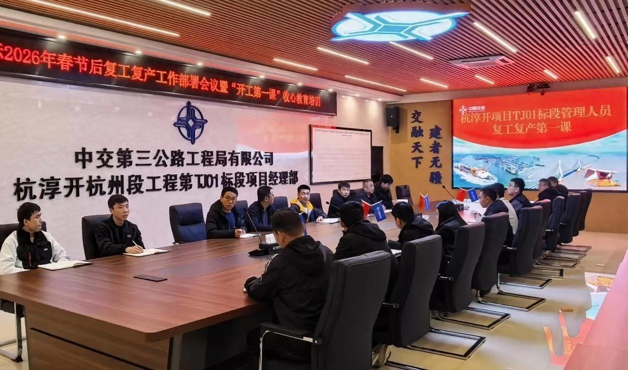 (记者 常魁星 通讯员 张波 林祥)马年启新程,奋战正当时。新春伊始,中交三公局杭淳开高速公路杭州段土建1标项目施工现场人员吹响集结号,机械设备整装待发,处处涌动着复工复产的热潮。项目部严格遵照指挥部复工复产工作部署,全面落实“六个一”安全要求,坚守“五不复工”硬性底线,以最快速度、最实举措按下施工“快进键”,全体参建人员以昂扬斗志、饱满热情投身建设一线,全力向着年度目标任务发起冲击。