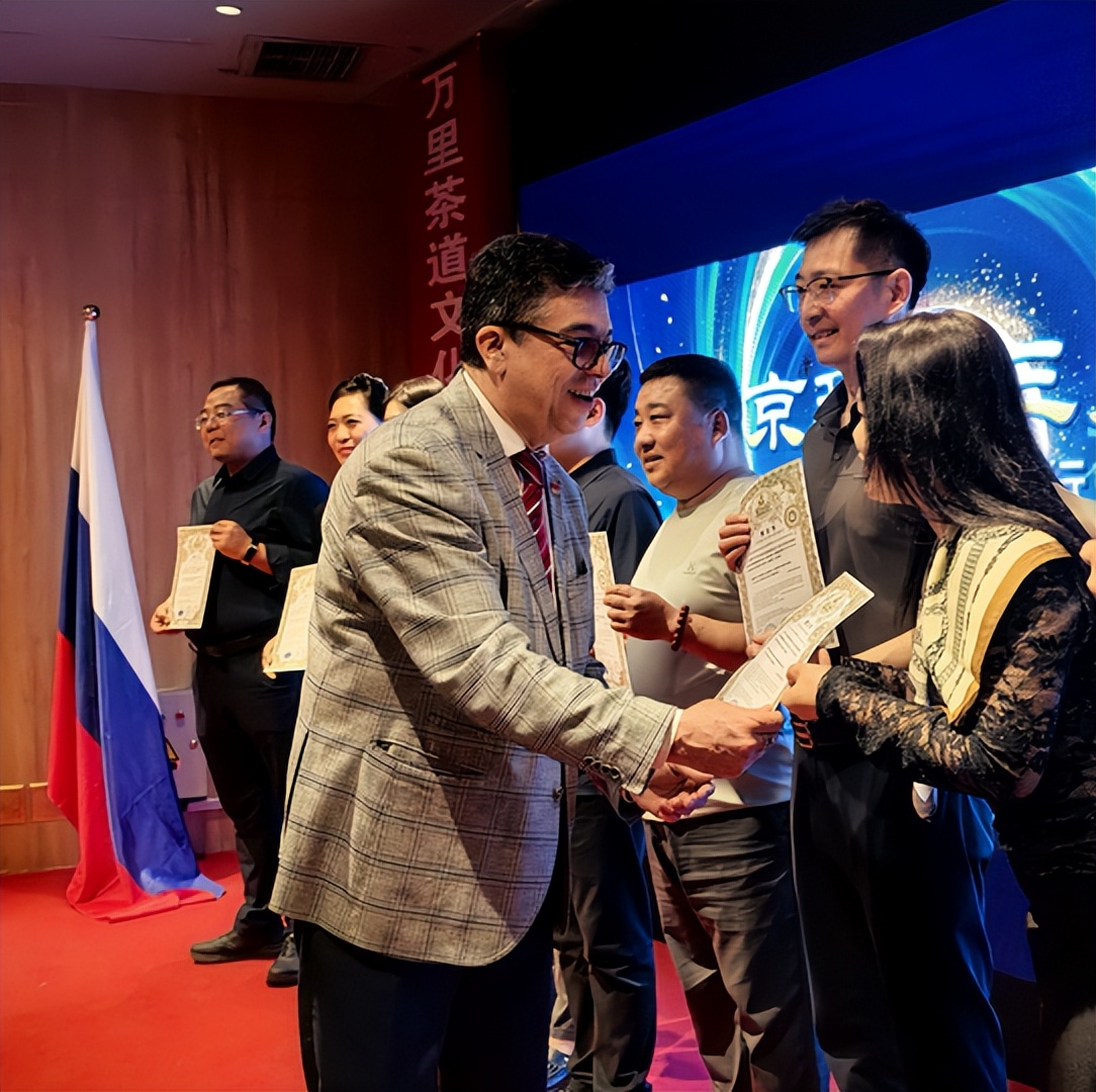 十年筑梦,茶道新声。中华文化促进会企业文化工作委员会主任谢海框致欢迎词,向远道而来的国际友人表示热烈欢迎,强调万里茶道作为"世纪动脉",是中蒙俄乃至欧亚文明互鉴、商贸互通的历史纽带,十年建设成果丰硕,未来更需携手共进。俄罗斯俄中友好协会副主席、代表团团长萨纳科耶夫·谢尔盖在致辞中高度评价万里茶道文化带十年成就,指出活动为中俄经贸、文化、文旅合作搭建重要平台,期待深化全方位合作,续写传统友谊新篇章。全球南方联盟驻非盟·蒙古国首席代表马卡马塔·卡比布拉耶夫、《中国地名杂志社》执行社长孟庆功相继发言,共同倡议以茶为媒、以文化人,推动万里茶道成为"一带一路"高质量发展的文化标杆。