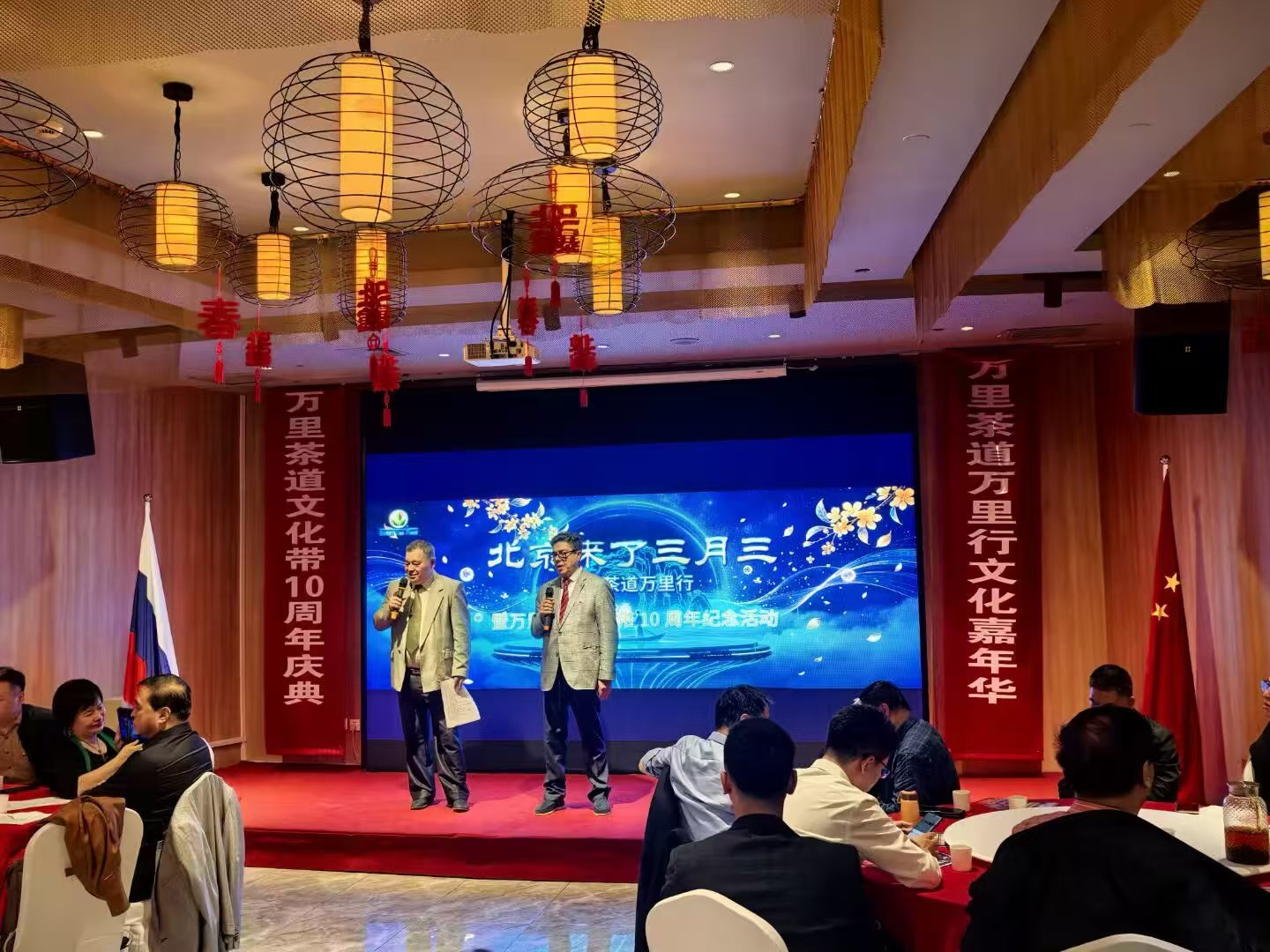 (记者 常魁星 通讯员 马春晓 霍金梅)在“三月三”到来之际,4月23日,万里茶道万里行系列文化嘉年华暨万里茶道文化带10周年纪念活动·中俄企业家见面会在北京中乐六星酒店隆重举行,共庆文化带建设十周年 中俄蒙企业家共商合作新篇。活动以"茶脉连万里,合作共繁荣"为主题,汇聚中、俄、蒙及欧亚多国政商领袖、文化名家、企业精英,共忆万里茶道百年荣光,共商新时代文化经贸合作大计,共启国际交流与产业协同新征程。