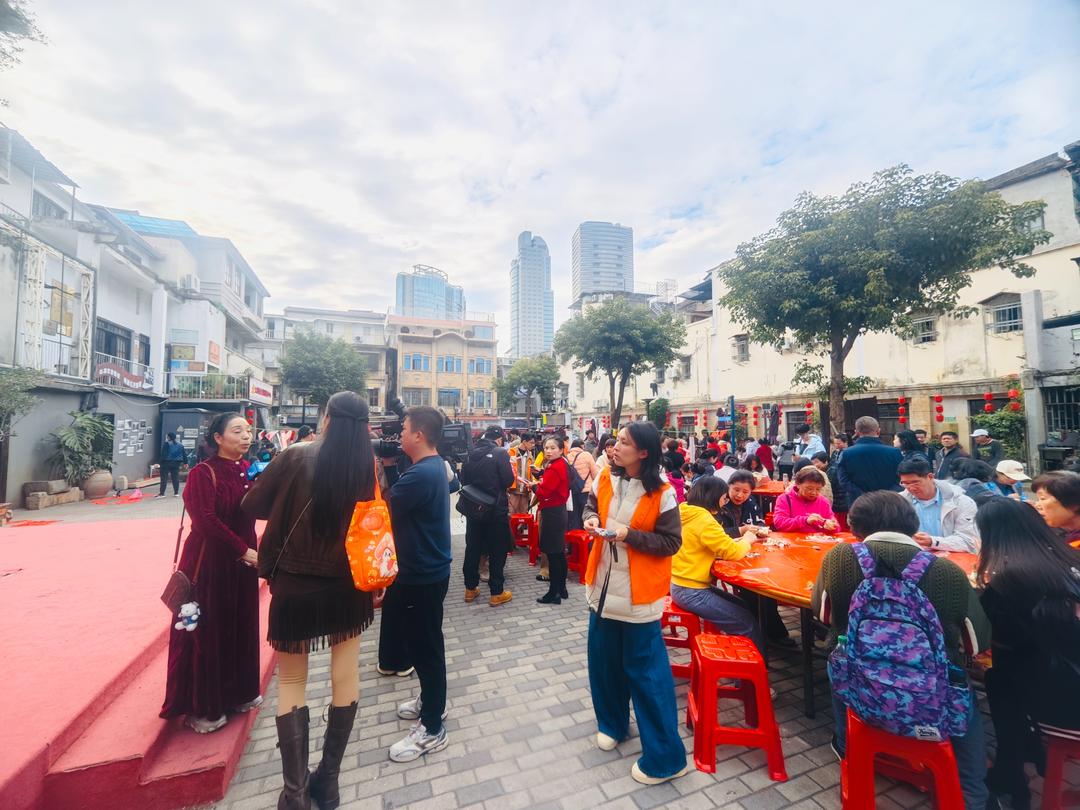行程随后延伸至八市、营平路一带,台胞们走进鹭江老剧场,参与“新春雅集”。活动现场,资深雕刻师现场教授水仙雕刻技艺,两岸书法家即席挥毫书写春联福字。台胞们围坐品茗、畅叙心声,在茶香与笑语中,两岸情谊愈发醇厚。