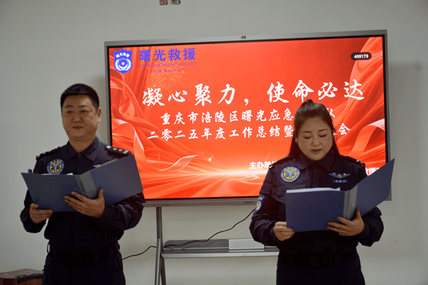 2026年1月16日,重庆市涪陵区曙光应急救援队2025年度工作总结暨表彰大会圆满举行。大会以“凝心聚力,使命必达”为主题,部分队员、志愿者及特邀嘉宾齐聚一堂,回顾全年救援工作成果,表彰先进典型,举行肩章授予仪式,重温救援誓词,为新一年应急救援工作凝聚奋进力量。