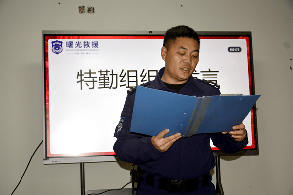 特勤组组长彭杰从一线视角发言,分享特勤队员在救援现场的坚守与付出,生动展现出曙光救援人英勇无畏、专业高效的硬核担当。