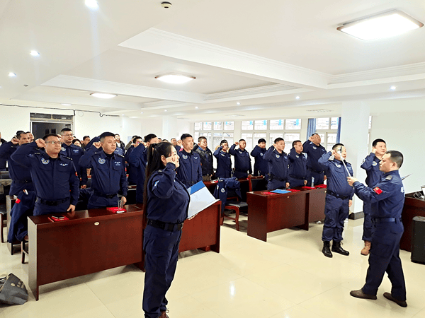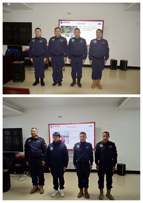 肩章凝责任,晋升耀荣光。大会举行庄重的肩章授予仪式,队长庄波为陈明党、洪杨果、张广成、黄正康4名三级队员逐一授章;队伍骨干廖川与队长庄波共同为王兴川、余秋鹏、张红军、况伟、蒋馨、胡波6名二级队员授予肩章。崭新的肩章不仅是对队员专业能力与辛勤付出的认可,更是新的责任与使命的象征,现场掌声雷动,为晋升队员送上诚挚祝贺。