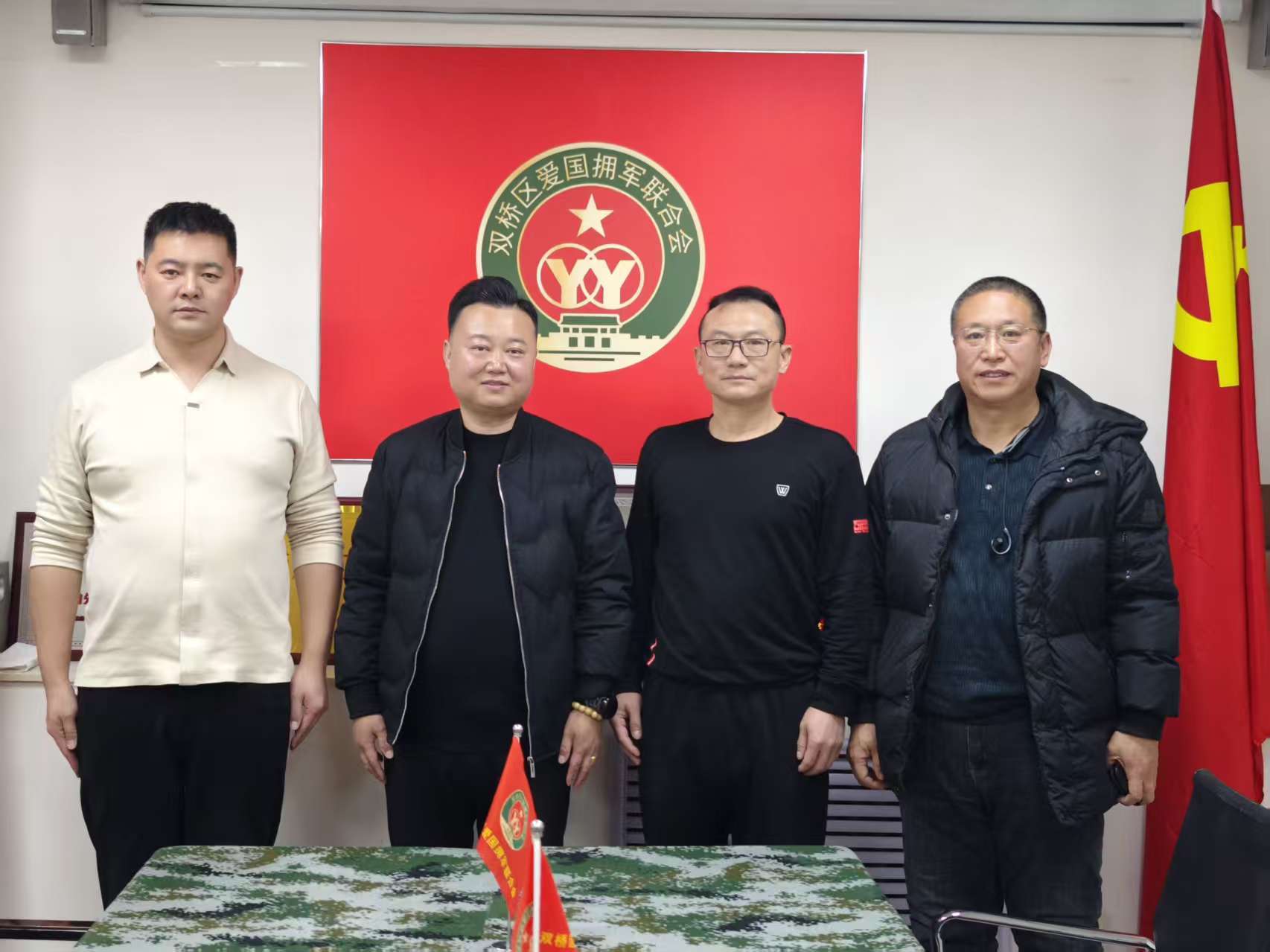 共工社1月23日电(曲东月)冬日暖阳映初心,军旅情深话担当。近日,香港共工新闻总社编委会成员、副社长,河北省传统文化促进会副会长兼秘书长李贵永率队到访承德市双桥区爱国拥军联合会,开展专题交流座谈。联合会理事长马洪国、副会长屠强热情接待。双方以“军旅情怀”为情感纽带,以“文化赋能”为发展共识,围绕新时代爱国拥军工作的创新路径与实践方向展开深入交流,共绘双拥事业高质量发展的新蓝图。