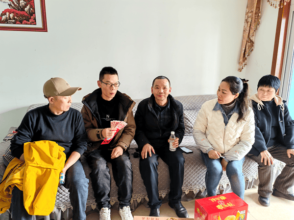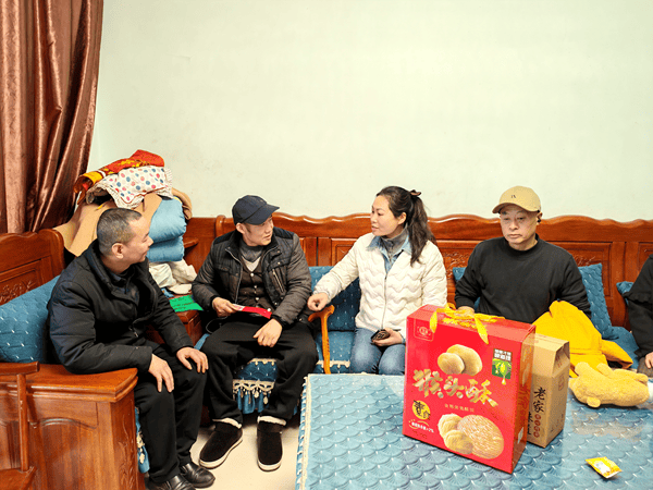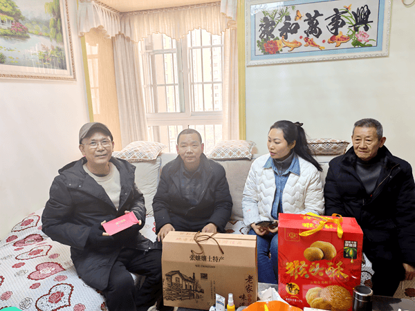 在两桂社区,陈平董事长一行在社区党总支书记、居委会主任冯琴,社区党总支副书记陈安权及社区组长陪同下,入户走访重病患者家庭,与慰问对象及家属亲切交谈,详细了解他们的身体状况、家庭生活与实际困难,鼓励大家保持乐观心态、积极面对生活,并为每户送上大米、食用油、腊肉、香肠、土特产等慰问品与慰问金,把关怀送到群众家中、暖到群众心里。