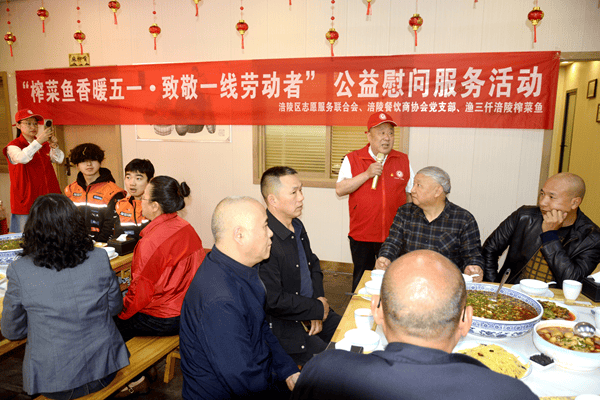 五一劳动节将至,为礼赞坚守岗位、默默耕耘的一线劳动者,传递城市温情,彰显企业与行业社会责任。4月29日,由重庆市涪陵区志愿服务联合会、涪陵区餐饮行业协会党支部、渔三仟涪陵榨菜鱼联合发起的“榨菜鱼香暖五一·致敬一线劳动者”公益慰问活动,在滨江路渔三仟涪陵榨菜鱼温情启幕。活动延续“一碗豆花饭·温暖一座城”公益初心,以特色美食传递暖心关怀,向各行各业一线劳动者致以诚挚的节日问候与崇高敬意,尽显涪陵餐饮行业的责任担当与温情大爱。
