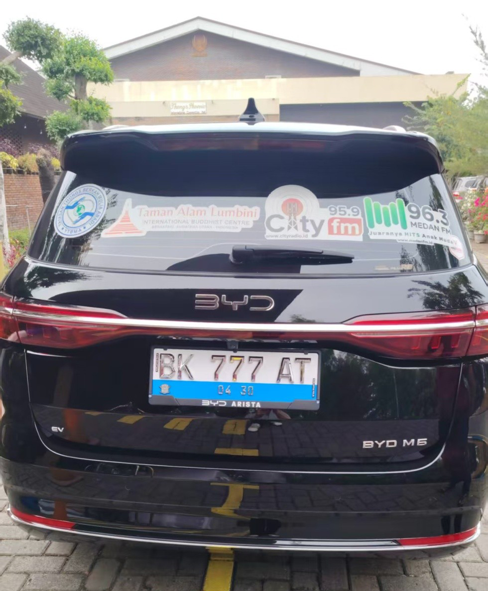 洪志通直言,去年11月比亚迪新能源汽车进入棉兰市场后,他了解到欧美国家以关税壁垒打压中国新能源车,这更坚定了他作为华人支持中国民族产业的决心。结合公司运营需求,他果断淘汰8辆燃油车,购入8辆比亚迪M6用于职员接送,每月可节省燃油开支约1200万印尼盾(约合人民币5,600元),同时助力环保与绿色交通发展。