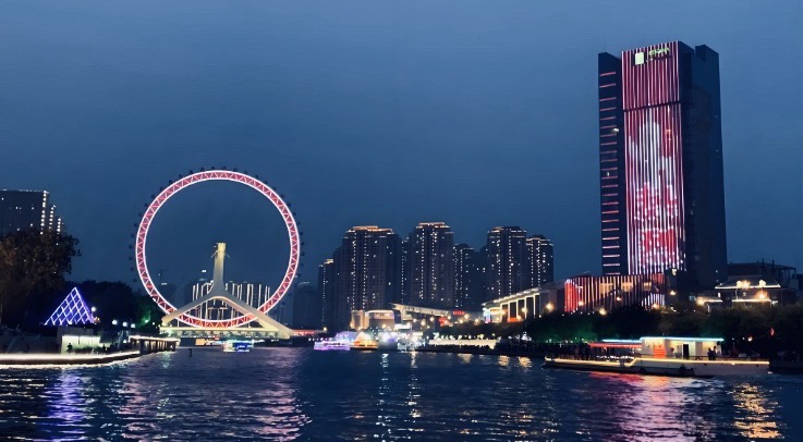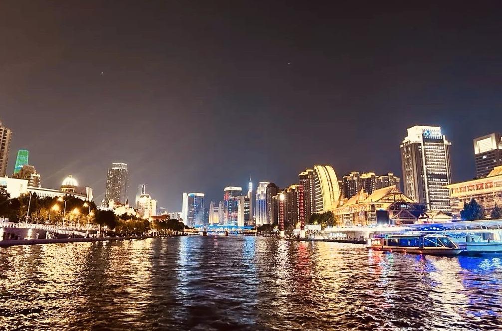 夜幕下的天津,海河灯火不仅点亮城市天际线,也映照着两岸同胞日益紧密的情谊。