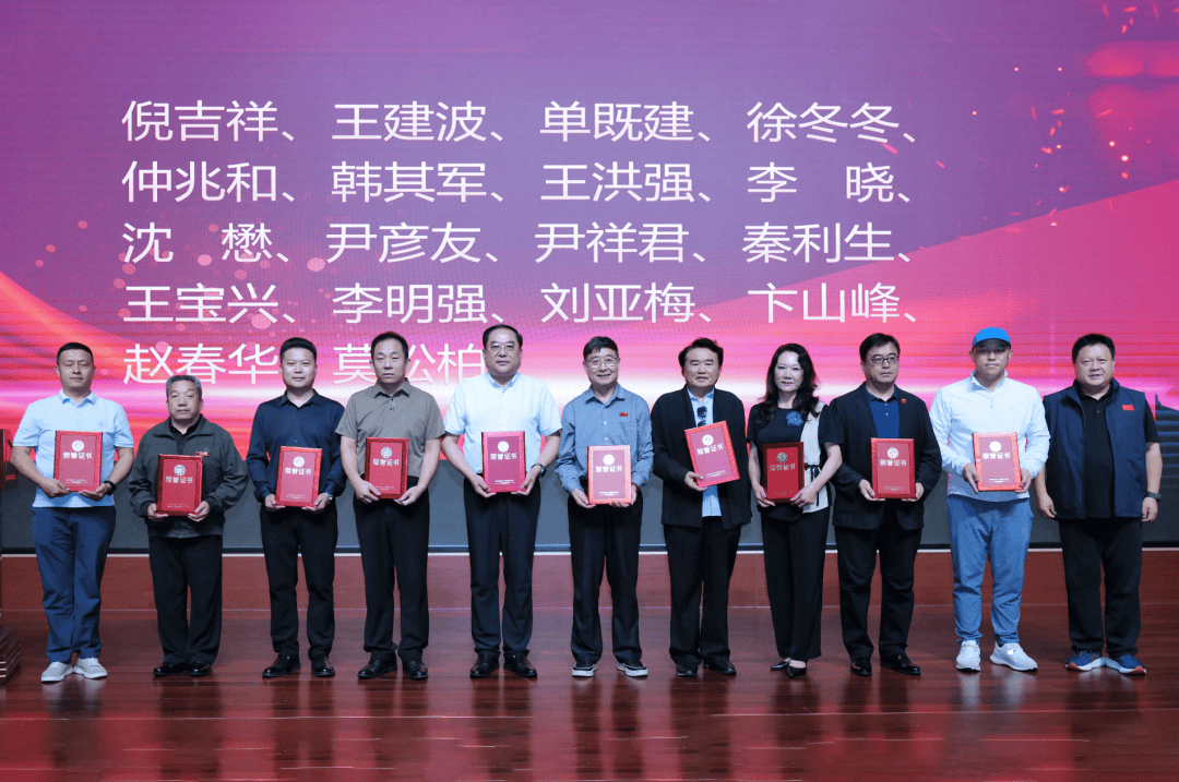 董方军会长向捐赠者代表倪吉祥、王建波、单既建、徐冬冬、仲兆和、韩其军、王洪强、李晓、沈懋、尹彦友、尹祥君、秦利生、王宝兴、李明强、刘亚梅、卞山峰、赵春华、莫松柏捐赠《汇典》