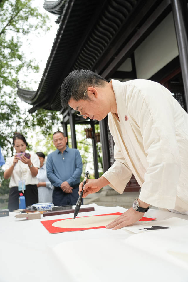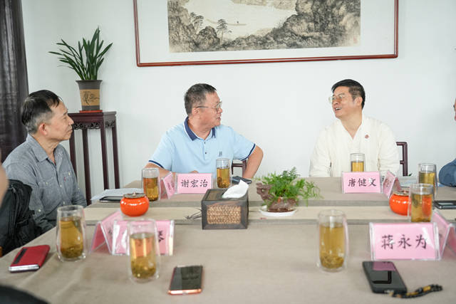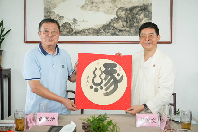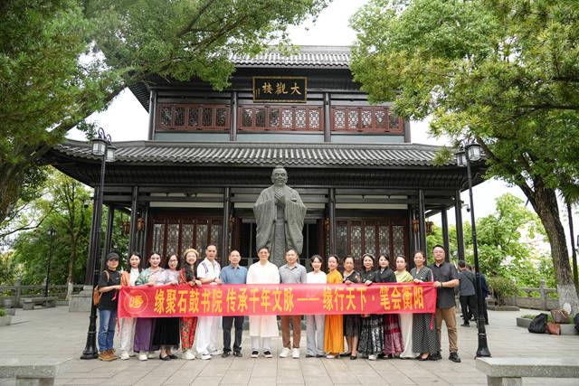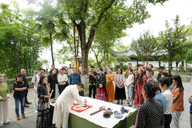 活动伊始,考察团一行参观了石鼓书院并举行笔会。唐健文副会长现场题写“缘”字,并赠予石鼓书院永久收藏。笔会期间,唐健文还展示了【中国古文字·百家姓】书法作品,生动讲解古文字演变历史,为座谈会营造了浓厚的文化氛围。