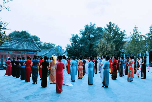 2025年9月21日,由北京市丰台体育舞蹈协会主办,中国商界文化艺术中心指导,光影华彩文化有限公司支持的第五届大型百人旗袍“非遗美学之约”活动在北京报国寺盛大举行。近160位参与者身着各具匠心的旗袍,于千年古刹中演绎了一场传统与现代交织的非遗美学盛宴,展现中华服饰文化的深厚底蕴与时代新姿。