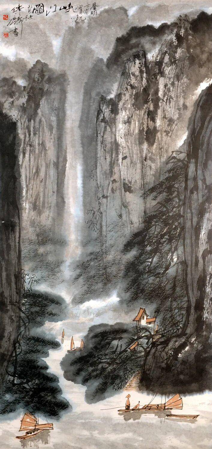 峡江图 136×66.7cm 纸本设色 1989年