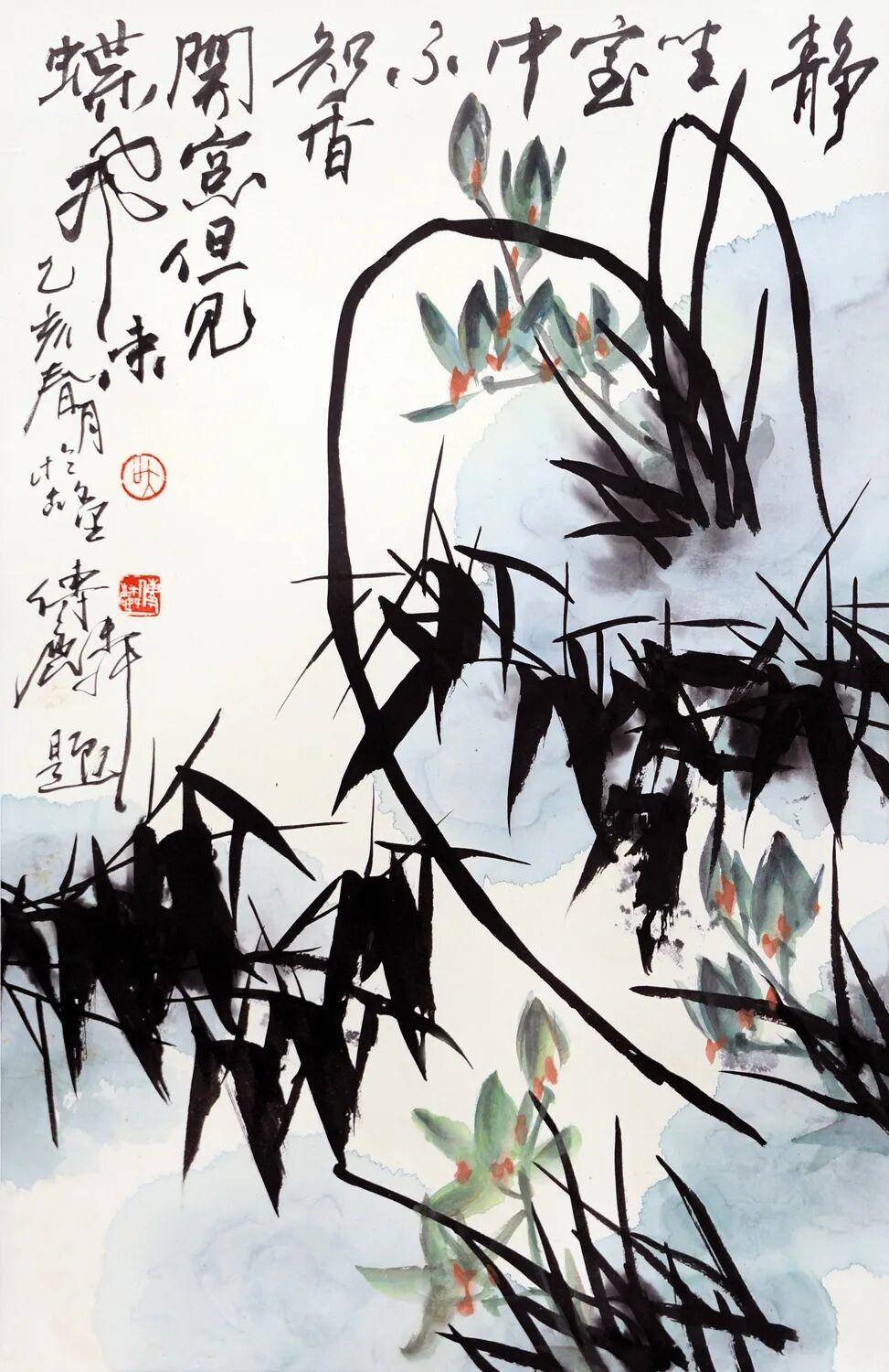 静坐室中不知香 开窗但见蝶飞来 68×44.5cm 纸本设色 1995年