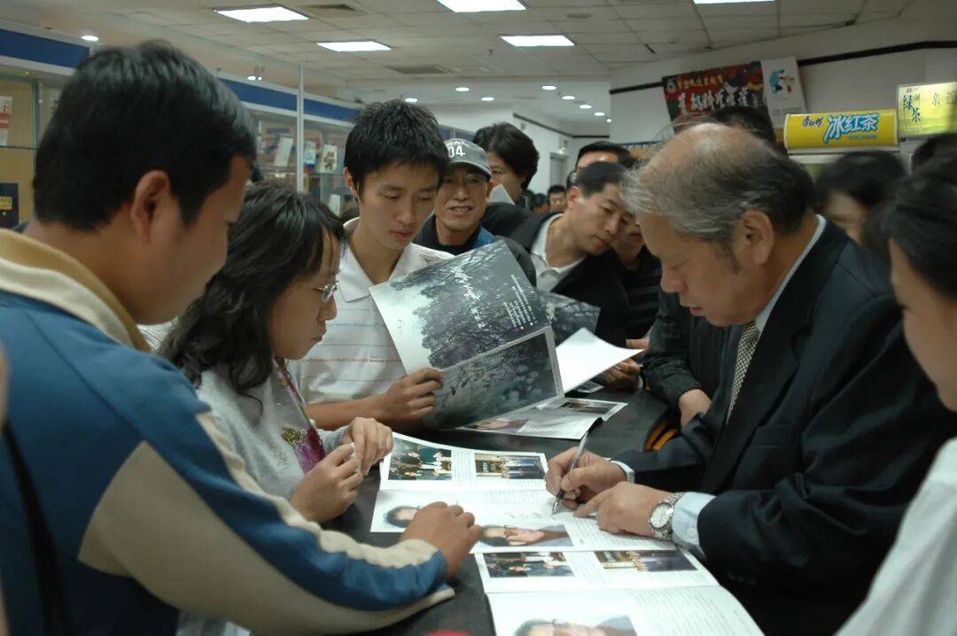 2007年北京王府井书店,吴传麟(右)为观众签字赠书