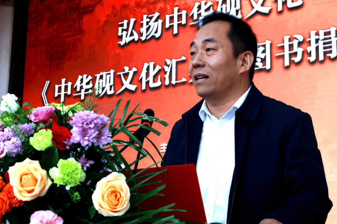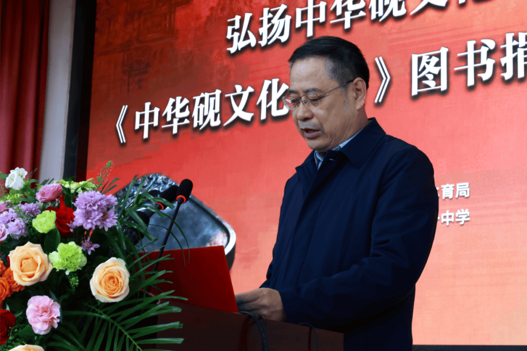 中国艺术节基金会副秘书长李晓,工艺美术大师刘克唐,砚文化研究会会长、山东省政协常委董方军先后发言,介绍了砚文化作为中华优秀传统文化的独特魅力和《中华砚文化汇典》的编纂历程及其文化意义,对平邑一中在文化传承与创新人才培养方面取得的成就给予高度评价。