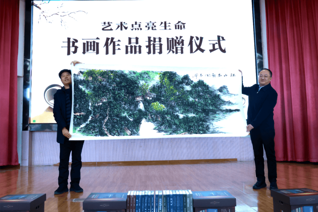 在隆重的捐赠环节,创会会长刘红军代表平邑一中北京校友会与王建波校友共同捐赠《中华砚文化汇典》全套图书;林沂蒙校友捐赠AI全息教学设备;中美协原秘书长邵春萍捐赠个人画作;工艺美术大师刘克唐、会长董方军捐赠珍贵砚台,平邑一中党委书记、校长王继峰、平邑一中党委委员、西校区校长王庆军代表学校接受捐赠并回赠证书。此外,王建波校友还向仲里中学、临涧中心校、郑城一中、临沂市科技信息学校、平邑县图书馆等五家单位捐赠了《中华砚文化汇典》,展现了爱心传递的广度与温度。