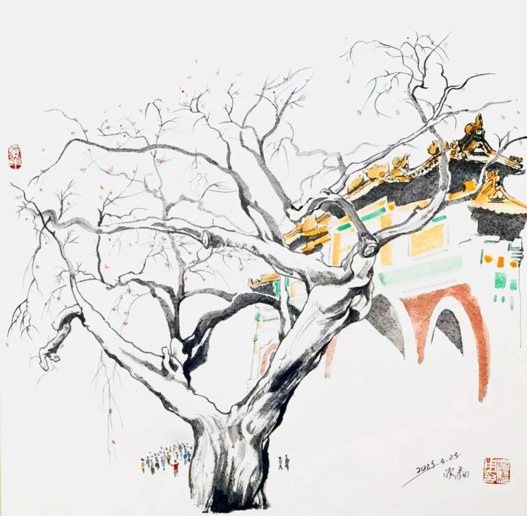 大槐树下的歌 纸本设色 50×50cm 2025年