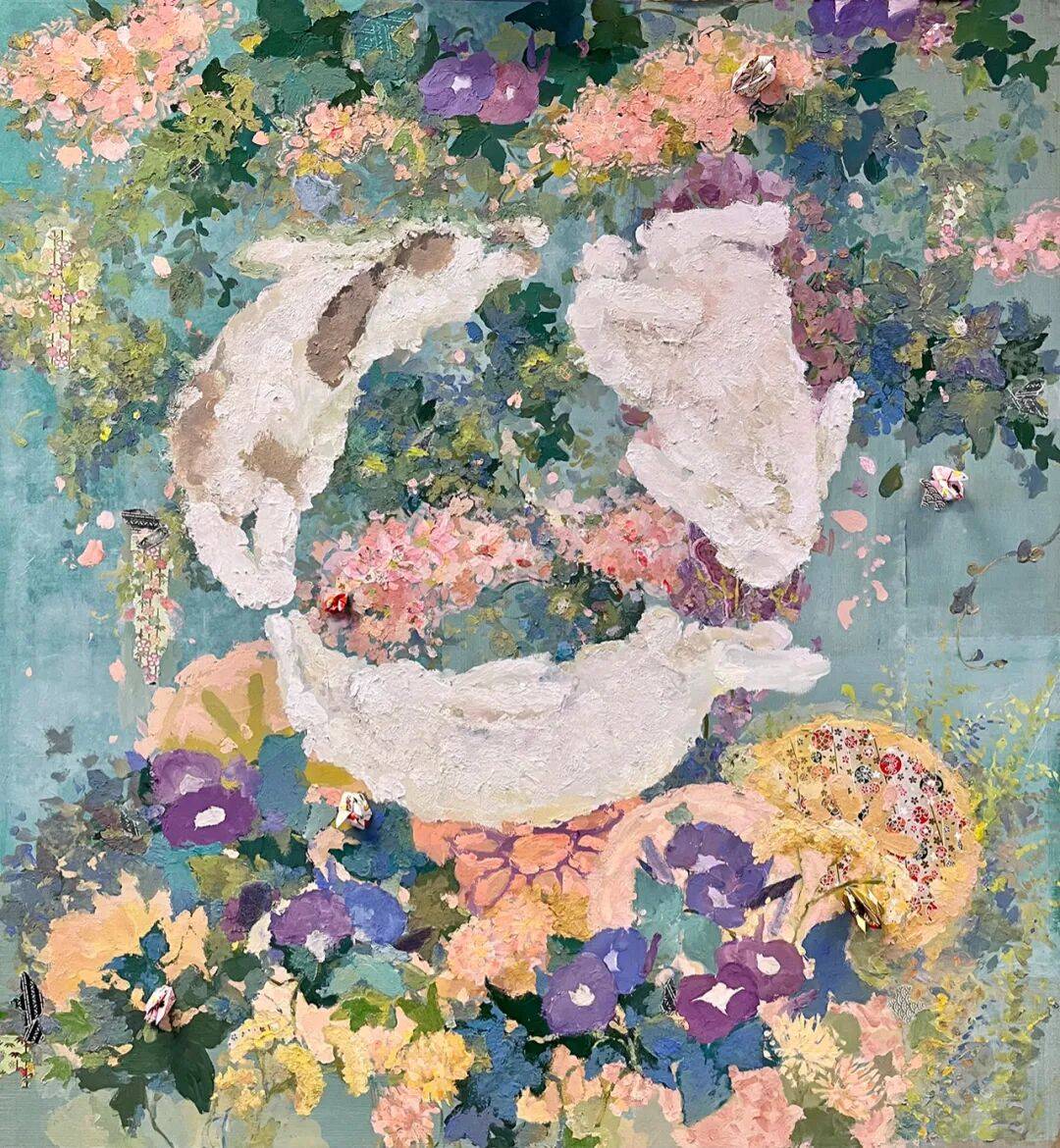 三只兔子 纸本坦培拉 140×130cm 2024年