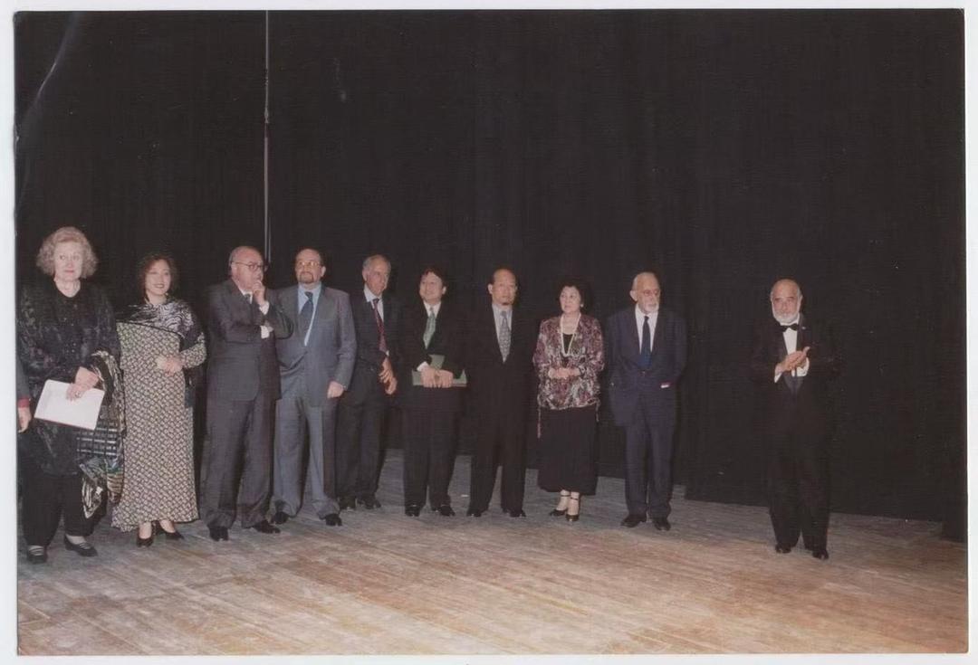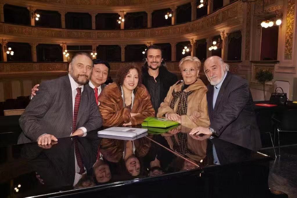 2000 年在意大利Teatro Bellini著名的Bellin 国际声乐比赛评审团。国际著名歌唱家有:左一:女高音歌唱家琼·萨瑟兰( Dame Joan Sutherland),左二:女高音歌唱家刘玉梅,左六:著名男高音歌唱家叶曲凌,左八:意大利La Scala著名指挥家Enrico De Mori,左九:男高音歌唱家Giuseppe Pastorello。加拿大共工社 发