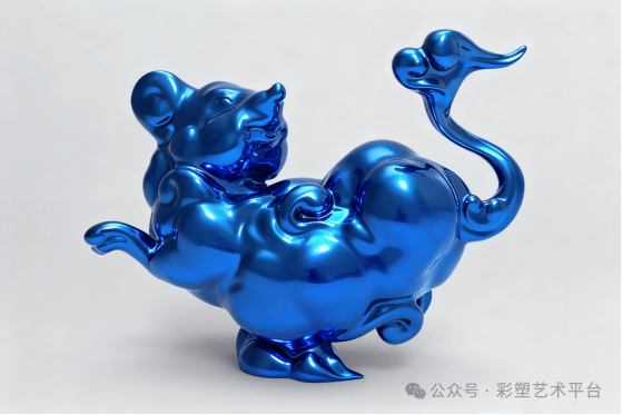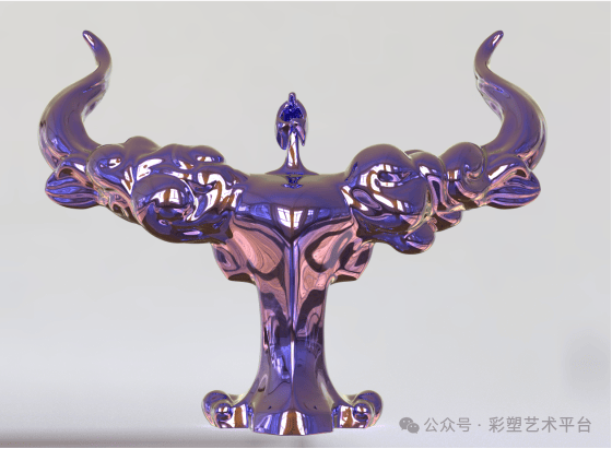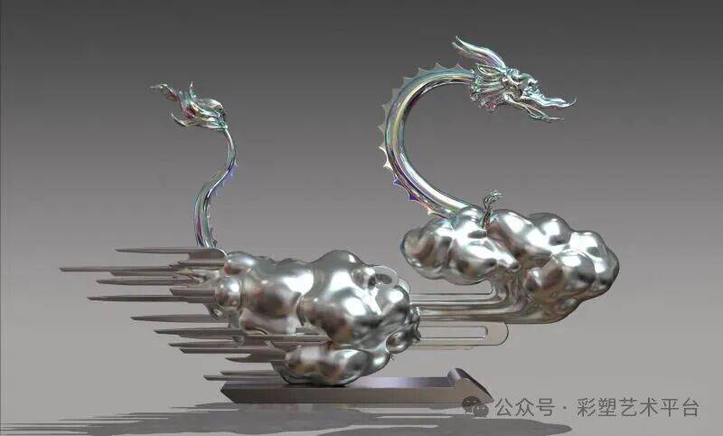 “十二生肖”是本次展览我的另一个系列作品。我选择了其中的“子鼠”“丑牛”“辰龙”三件。这个系列是以“云”作为贯穿始终的造型元素,将金属与光影交织中的折射与光晕,结合高反光表面形成了具有现代感的酷炫视觉效果。