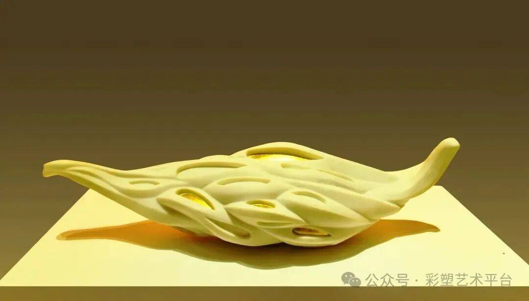 《孕生·春之启》这件作品以植物的种子作为创作的主题,表现平静坚毅外壳下所蕴藏的深沉的生命力和内驱力。形态上受到了建筑师扎哈・哈迪德(Zaha Hadid)作品的启发,借鉴了有机建筑的锐角尖顶、流动的长弧曲线特点构成作品的造型。