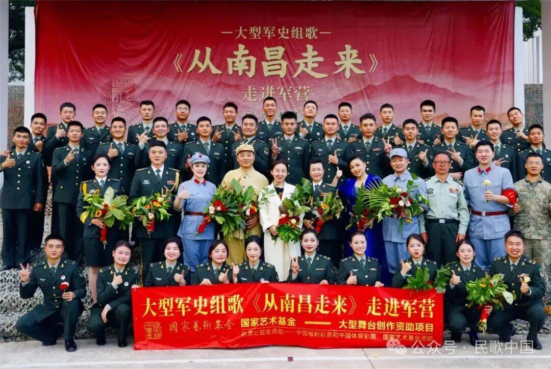 《从南昌走来》在艺术表现上具有独特的贴近性。演出的演员大多来自基层一线,他们通过有限的时间进行高强度排练,力求将最好的情绪和表演带给台下的战友。这种贴近性不仅体现在演员的身份上,更体现在歌曲的内容和表演形式上。组歌融入了历史场景与民族音乐元素,如江西民歌风格的旋律、陕北方言的点缀等,让歌曲更具地域特色和历史韵味。