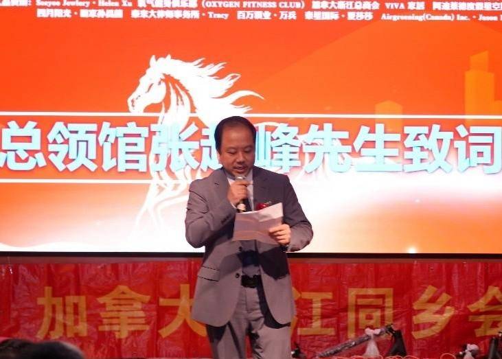 中国驻多伦多总领事馆政新领侨处主任张超峰出席活动并致辞,对本次新春大联欢的举办表示热烈祝贺。他高度评价加拿大浙江同乡会十三年来在凝聚侨心、服务侨胞以及促进中加文化交流与经贸合作方面发挥的重要作用,并希望同乡会继续发挥桥梁纽带作用,推动中加民间友好交流不断深化。
