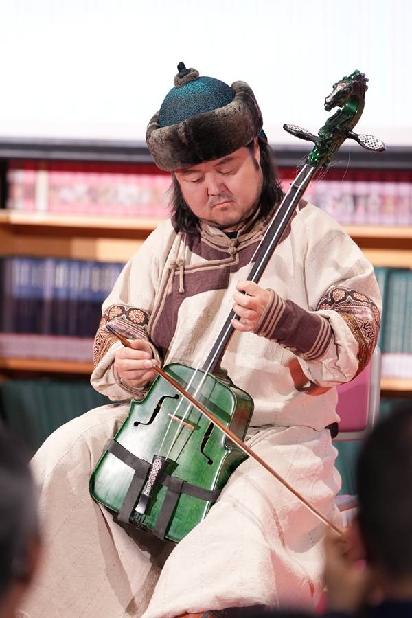 蒙古族火不思县级非遗代表性传承人其其格带来了火不思独奏曲《阿其图》。火不思是蒙古族极具代表性的古老弹拨乐器,其古朴、醇厚的音色展现了蒙古族音乐的独特魅力。