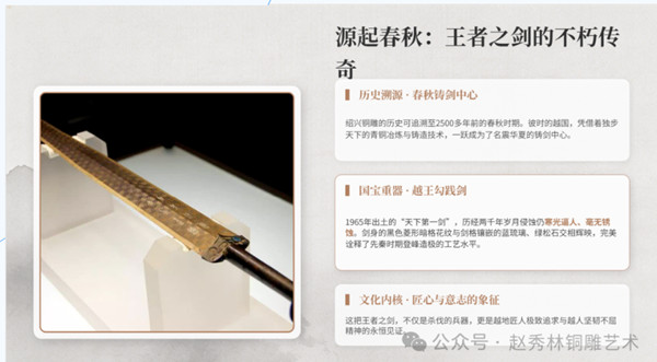 当喧嚣裹挟着焦虑袭来,我们总在奔波中弄丢了与自己对话的机会,身心俱疲,却找不到一处安放情绪的角落。绍兴铜雕有着2500年的悠久历史,从春秋时期越王勾践剑上的鸟篆铭文,到造型独特的青铜伎乐屋,再到汉唐时期风靡天下的越地铜镜,每一件珍品都镌刻着越地匠心与铜艺底蕴。省级非遗绍兴铜雕代表性传承人赵秀林先生,深耕铜艺六十余载,打破了非遗与日常的壁垒,将这份跨越千年的铜雕匠心与东方疗愈智慧相融,让一锤一凿的力量,化作治愈现代人心的温柔解药——无关技艺高低,只为安放每一份浮躁与疲惫。